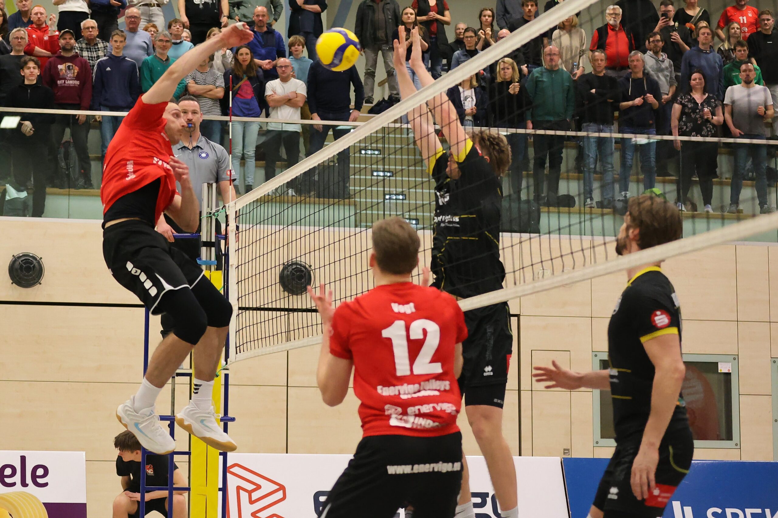 Das letzte Heimspiel des Teams Dentalservice Gust VC Dresden in diesem Jahr in der 2. Volleyball-Bundesliga endet mit 1:3 (21:25, 15:25, 25:22, 18:25) gegen Vorjahresmeister Baden Volleys SSC Karlsruhe. Das war jedoch ein Spiel zweier Mannschaften, die so in dieser Saison vermutlich nicht mehr auflaufen werden, denn auf beiden Seiten war die Zahl der Erkrankten groß. Karlsruhe reiste ohne fünf Stammspieler an, Dresden musste gleich auf sieben Spieler aus dem Stammformation verzichten. So kamen die erst 17-jährigen Luis Dömeland und Nikolas Söhnel zum Einsatz. „Wir mussten das Team mit drei Spielern aus der Regionalliga auffüllen. Da war natürlich klar, dass das keine leichte Aufgabe werden würde“, sagt Dresdens Trainer Stefan Benderoth. Auch Routinier Carsten Böttcher wurde noch mal für das Bundesliga-Team reaktiviert.