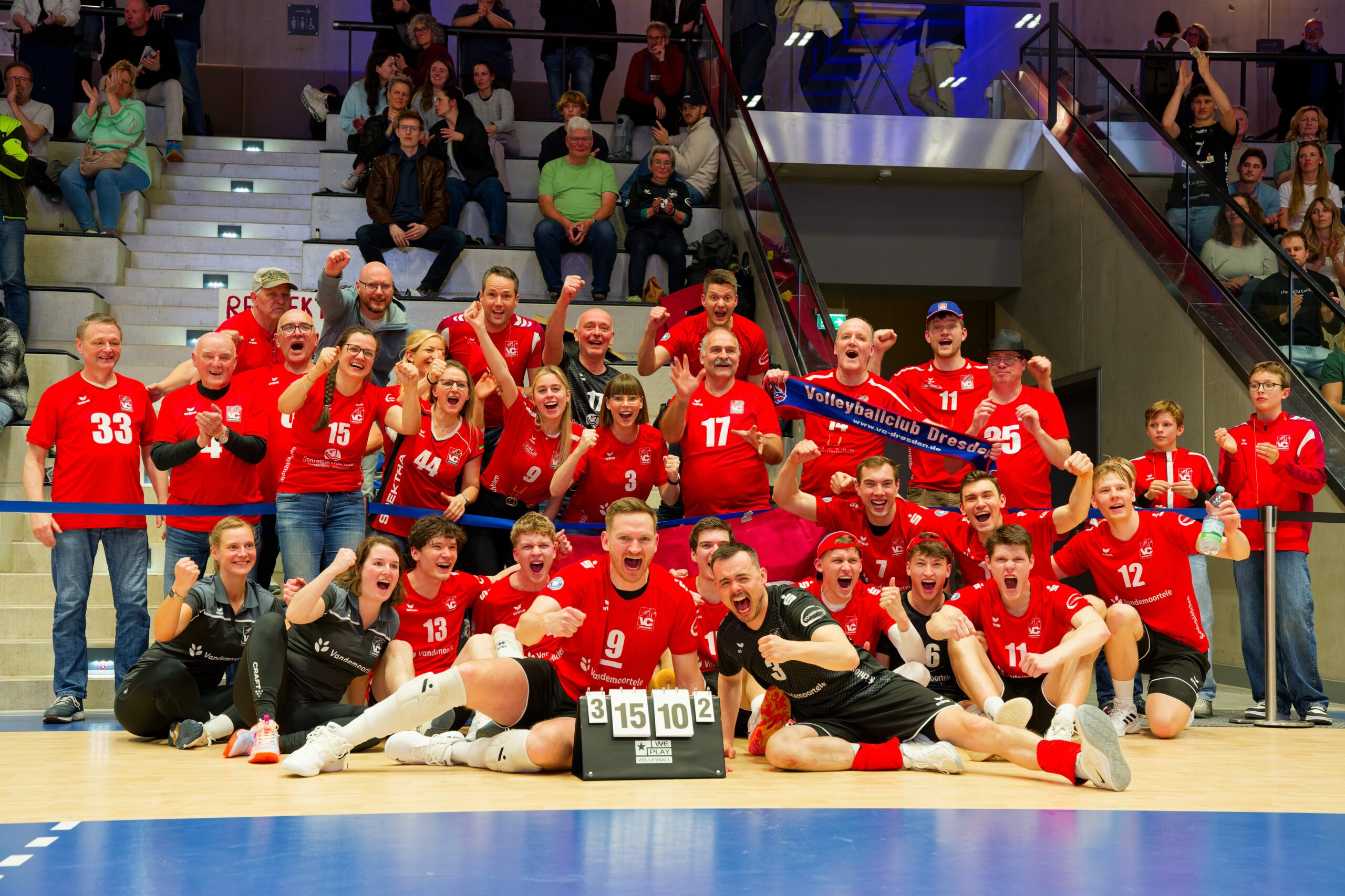 Für den VC Dresden spielten: Christian Heymann, Martin Kroß, Lukas Klapper, Paul Schneider, Nisl Püschel, Sebastian Rösler, Jan Sören Thede, Moritz Mitbauer, Ritchie Riedel und Benno Hartung.